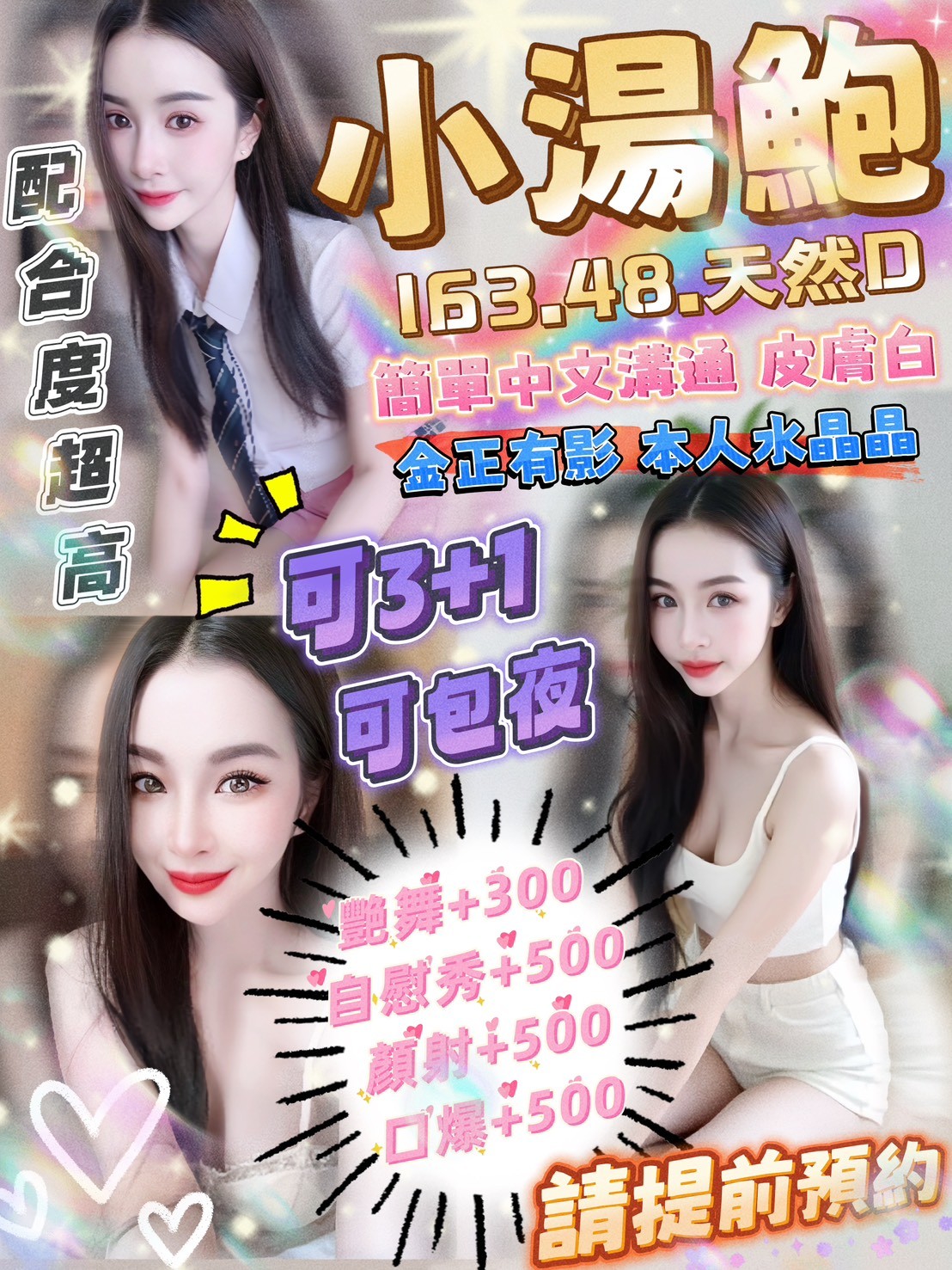 無套吹 奶炮 按摩 深喉嚨 品鮑 69 舔蛋 共浴 胸推 屁推 水中蕭 奶砲 親嘴/舌吻(視衛生) 絲襪(自備)