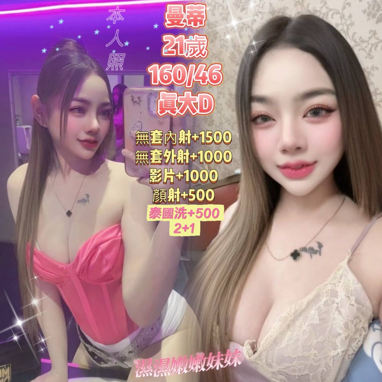 泰國洗+500 射顏+500 攝影不露臉+1000 無套+1000 無套內+1500 2+1