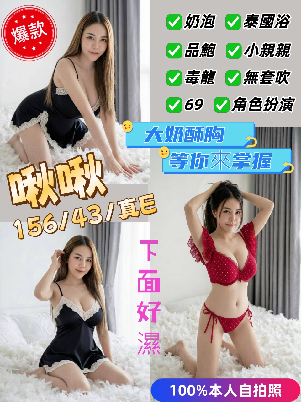 無套吹 按摩 共浴 小親親 奶泡 品鮑 泰國浴 毒龍 六九 雙飛 絲襪 角色扮演